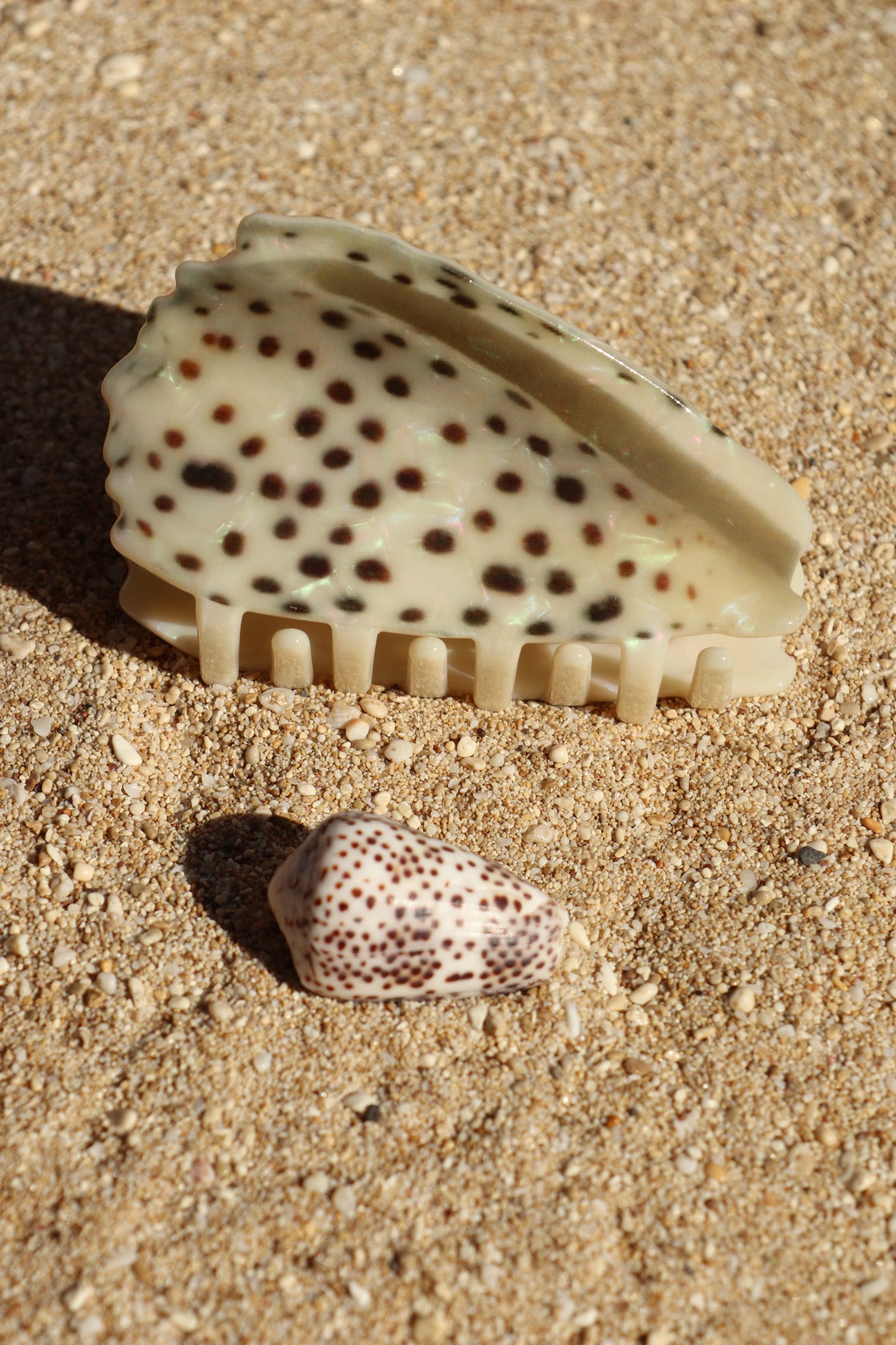 our flea cone claw clip — available in regular and mini — is crafted from sustainable plant pulp, treated with acetic acid for lasting strength and everyday wear